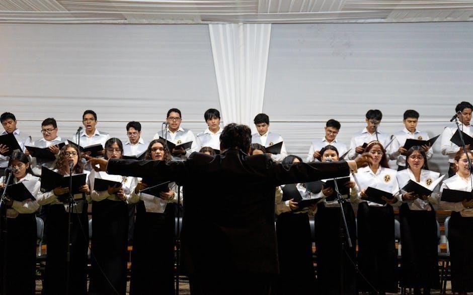 When a piano is substituted, the performance requires careful voicing to avoid overpowering the choir․ The keyboard instrument’s role is to blend seamlessly, providing a solid foundation without detracting from the vocal brilliance․ The PDF scores often include specific voicing suggestions for both organ and piano arrangements, ensuring a balanced and impactful performance․
