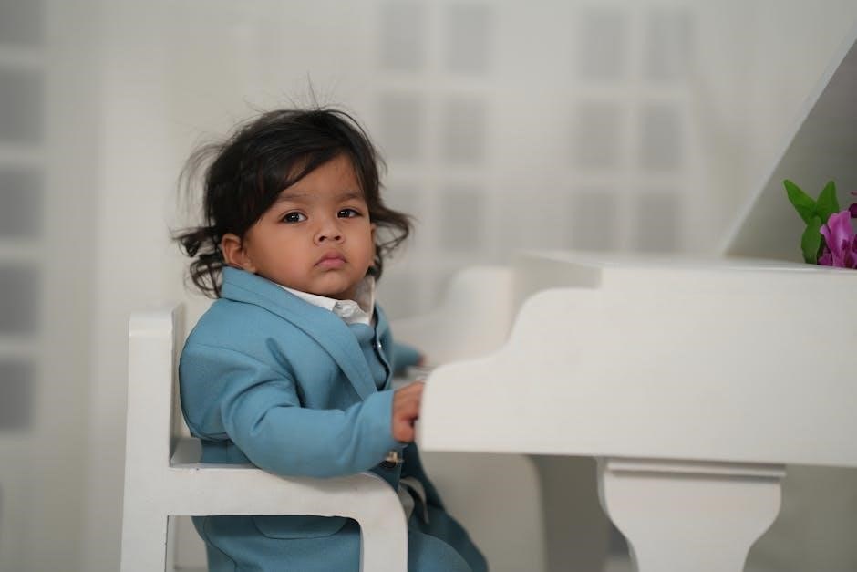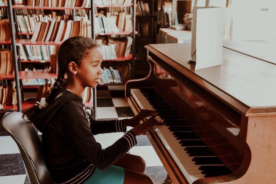 Piano book for beginners PDF versions of classics like John Thompson’s course are widely available online, offering structured lessons and progressive skill development.