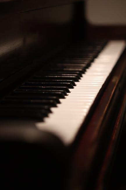 Piano book for beginners PDF versions of classics like John Thompson’s course are widely available online, offering structured lessons and progressive skill development.